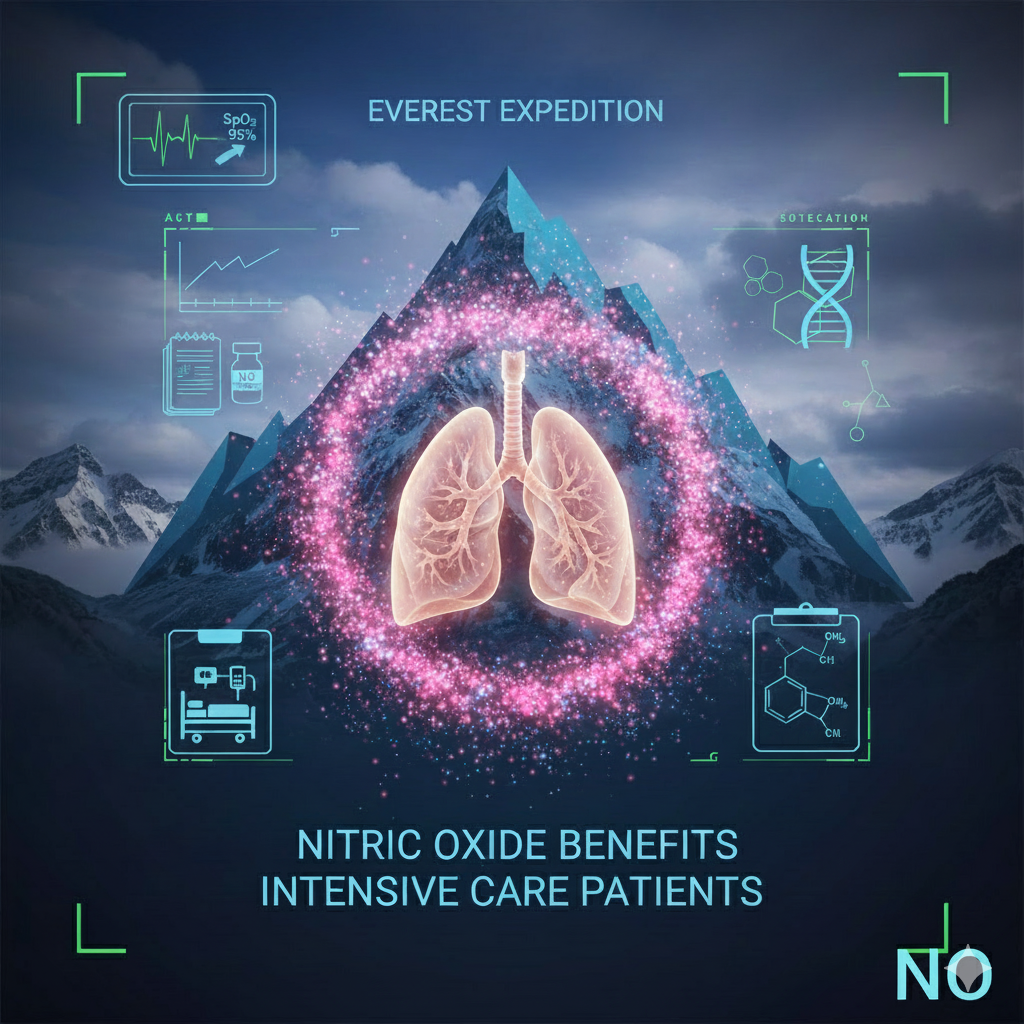 At extreme altitudes, oxygen is scarce. Researchers observed that the body adapts by producing higher levels of Nitric Oxide (NO), a molecule widely studied in human physiology and commonly discussed in relation to normal blood vessel function and oxygen transport. These observations have since been referenced in scientific discussions, including exploratory research contexts related to intensive care environments, where oxygen availability is a key consideration.